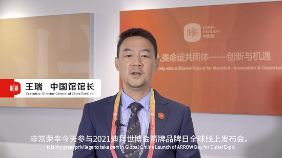 王馆长表示:非常荣幸参与2021迪拜世博会箭牌品牌日全球线上发布会。中国作为迪拜世博会重要的参与者,建设了本次世博会规模最大的国家馆之一——中国馆“华夏之光”。期待,箭牌通过此次世博盛会,让世界各国人民全面地了解到中国智慧家居的技术成果和优秀产品,为中国优秀企业品牌“出海”做出了示范。